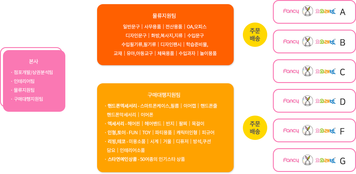 일부 타 프랜차이즈 경우 구매대행 시스템이 전혀 없으며 초기 대량 매입하여 주문건에 한해 위탁 물류에서 보내는 경우가 있습니다.