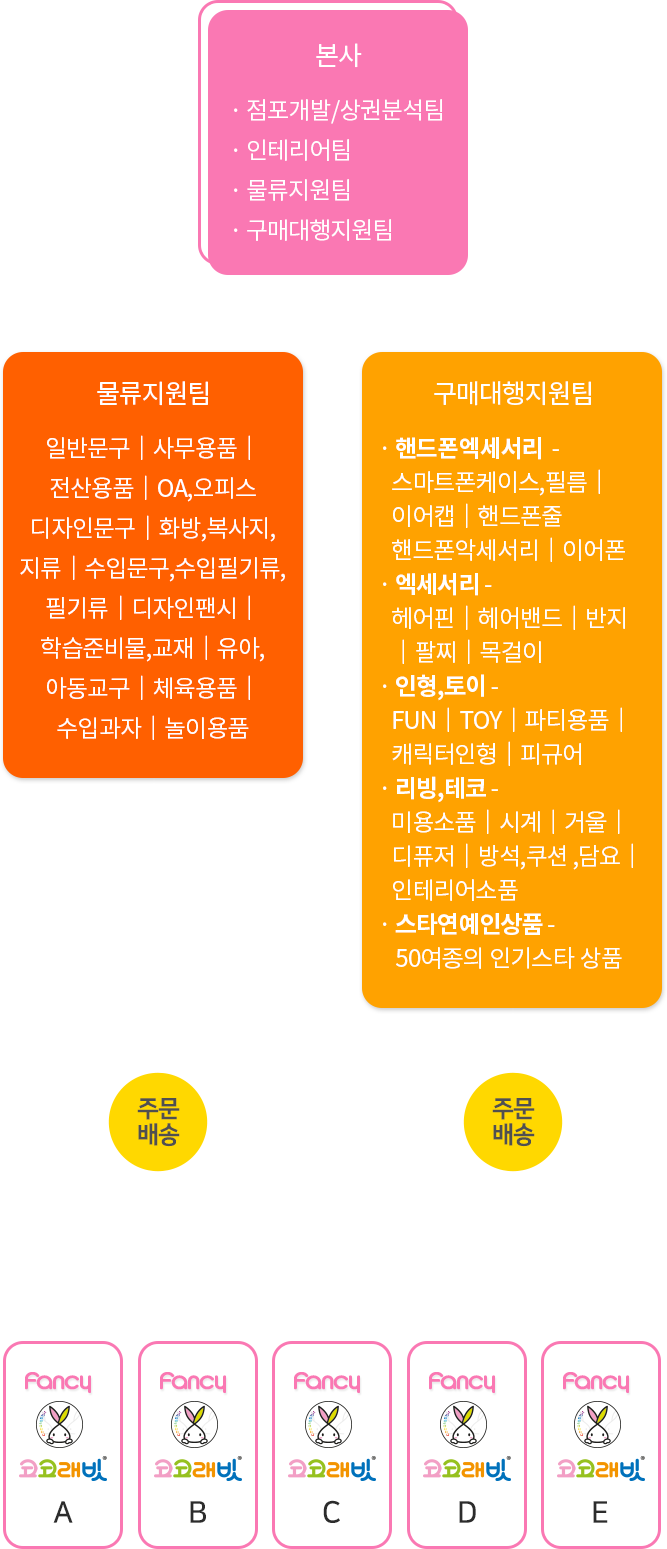 구매대행요청시 가족점을 위하여 하루라는 시간을 아끼지 않고 풍부한 매장경험과 상품을 보는 안목이 뛰어난 BY·MD가 항상 수십여곳의 거래처를 발품을 팔아 매장특성, 가격, 이미지, 적정 수량을 체크하여 고객의 마음을 사로잡을 수 있는 인기상품, 신상품, 감성제품을 공급합니다.